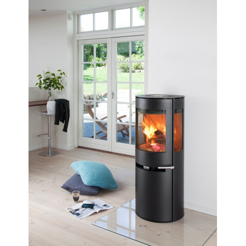 ORIGINÁL JE JENOM JEDEN – Skvost z dílny dánských vývojářů krbových kamen Aduro – kulatá konvekční krbová kamna Aduro 9.5 jsou zvýšenou modifikací základního modelu Aduro 9. Kamna mají na obou stranách spalovací komory velké prosklené otvory, které zajišťují maximální možnost pohledu na krásnou hru plamenů doslova ze všech stran. Oba boční skleněné průzory jsou opatřeny svým vlastním oplachem skla sekundárním přívodem vzduchu (sklo dvířek samozřejmě také), které zajišťují maximální možnou čistotu skel a jsou podle potřeby regulovatelné.