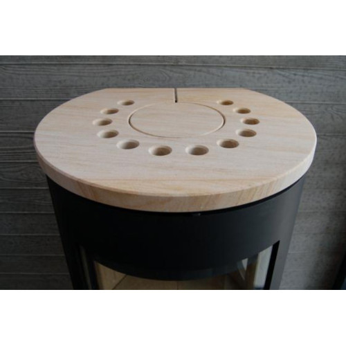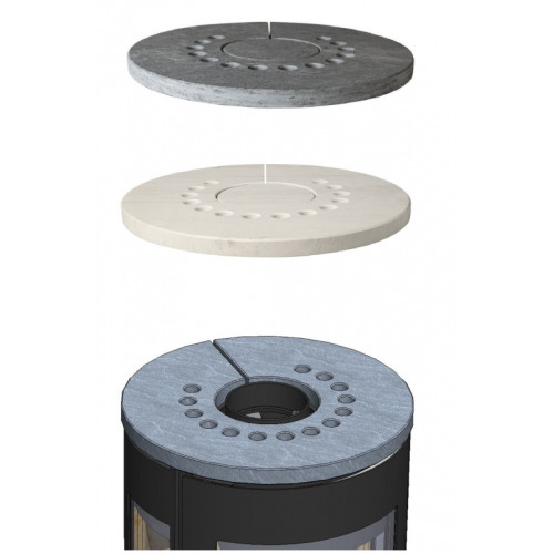 Na horní část krbových kamen je možné pořídit kamennou desku (mastek nebo pískovec), fotografie níže v galerii. Tyto světlé kameny tvoří krásný kontrast s černým pláštěm kamen.