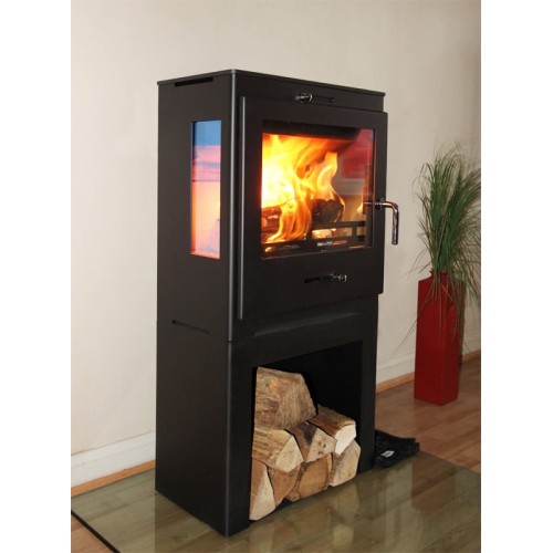 Jedná se o velmi odolná krbová kamna vyrobena z ušlechtilé kamnářské oceli s prosklením ze tří stran, takže můžete sledovat hru plamenů i z boků kamen. Jsou to v podstatě krbová kamna hede 1 Panorama postavena na podstavec, který zároveň slouží jako prostor pro skladování dřeva.