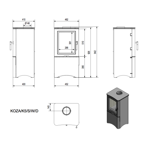 Krbová kamna KOZA K5 S W zásobník s dvířky