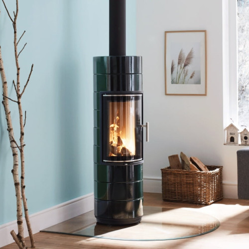 Kamna lze také doplnit otočnou podložkou s hrdlem a díky tomu můžete i takto těžká kamna za provozu pohodlně otáčet v interiéru až o 360°.