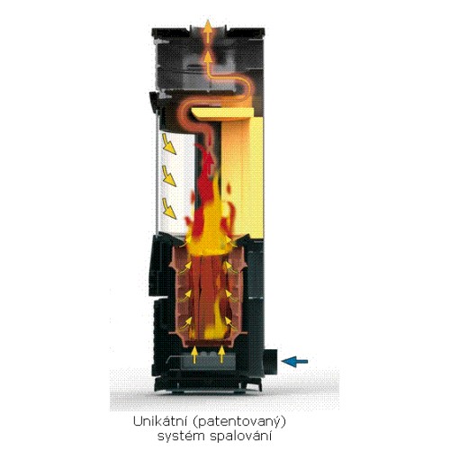Název krbových kamen Unica hovoří za vše. Kamna Unica jsou unikátní a to konkrétně tím, že mají patentovanou, téměř bezúdržbovou spalovací komoru (více zde)! Spalovací komora je válcovitého tvaru pod úrovní dvířek, kde se vkládá palivo na výšku do litinového tubusu, kde jsou ve třech úrovních přívodní trysky vzduchu a poleno prohořívá rovnoměrně po celé délce. Vy jako uživatel si na plno užíváte pouze pohled na plameny a zároveň dochází k propadávání veškerého popela do popelníku pod spalovací komorou čímž se tato kamna stávají skoro bez údržbová (min. riziko úniku popelu do místnosti).