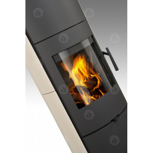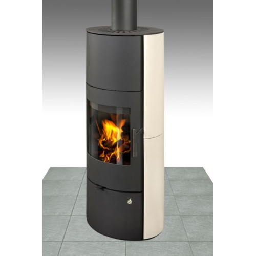 Štíhlá vysoká akumulační kamna EVORA AKUM s oblíbenou oválnou základnou a s vysokou schopností sálat dodatečné teplo.