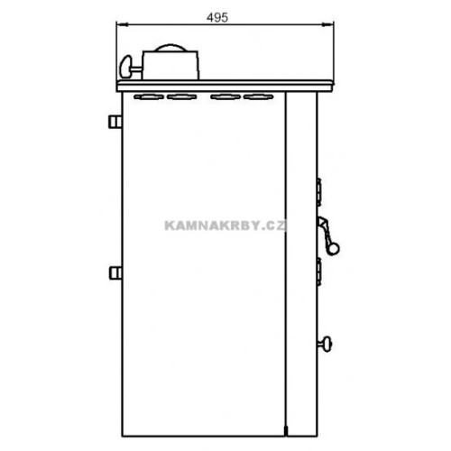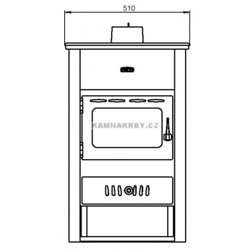 Krbová kamna jsou vyrobena z ocelového plechu tl. 3 mm a opatřena černým žáruvzdorným nátěrem. Topeniště je osazeno šamotovými tvarovkami a litinovým roštem.