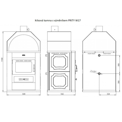 Krbová kamna jsou vyrobena z ocelového plechu tl. 3 mm a opatřena černým žáruvzdorným nátěrem. Topeniště je osazeno šamotovými tvarovkami a litinovým roštem.