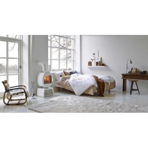 Scan 66–4 má čtverhranný podstavec, který vytváří příjemnou iluzi lehkosti – topeniště se nad ním zdánlivě vznáší jako ve stavu beztíže.