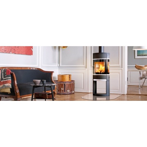 - Kamna stoji na otevřeném podstavci, ke kterému lze dokoupit dvířka v černém laku
