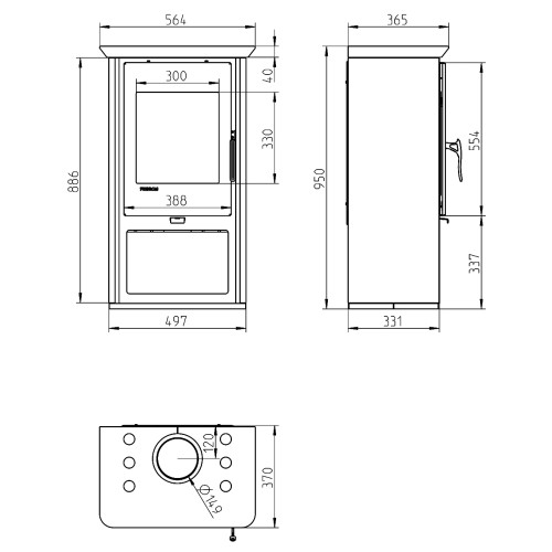 • Výška hrdla kouřovodu nad podlahou 886 mm