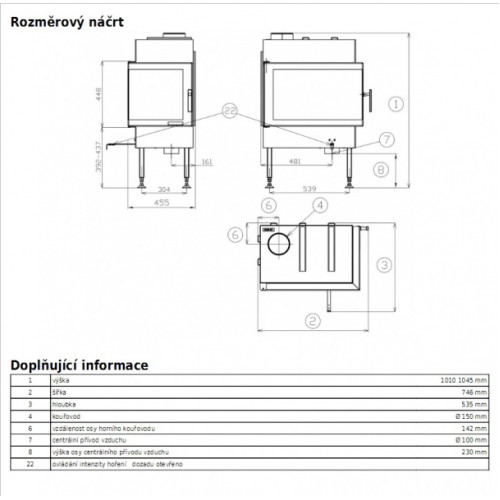 - výška osy horního kouřovodu - 142 mm