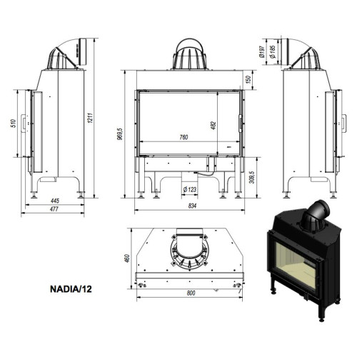 • Rozměry topeniště VxŠxH       471x694x306mm