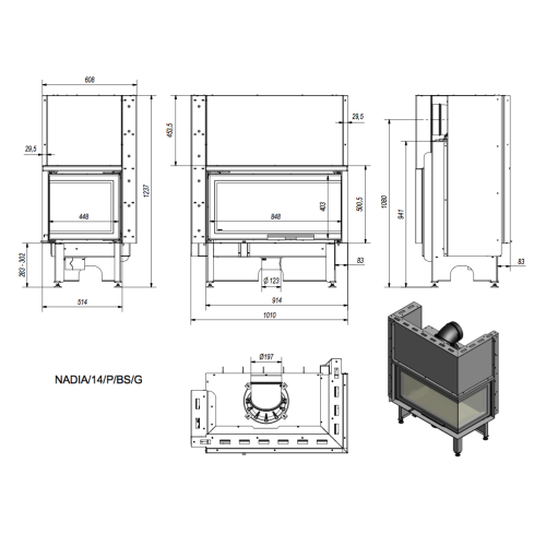 • Rozměry topeniště VxŠxH       422x727x338mm