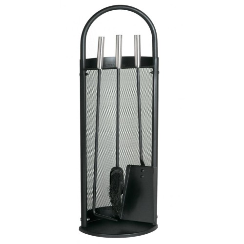 Udělejte si svůj krb jedinečný s kvalitním rakouským krbovým nářadím. 3-dílná sestava krbového nářadí na stojánku v černém provedení s nerezovými rukojeťmi. Součástí je smetáček, lopatka a háček. Výška 66 cm, šířka 22 cm.