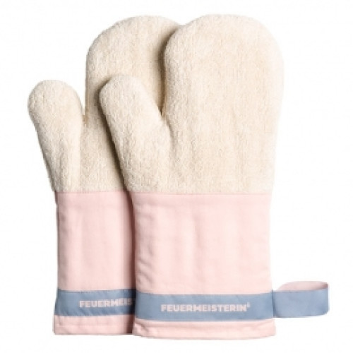 Kuchyňské rukavice Premium - velmi kvalitní froté rukavice pro ochranu ruky a předloktí před teplem žárem během vaření, pečení nebo grilování při manipulaci s horkým pekáčem, plechem, formou nebo hrncem. Chňapky, jak se těmto kuchyňským rukavicím běžně říká, jsou vyrobeny z tepluodolného materiálu, vnitřní hebká avšak pevná výplň zároveň zajistí maximální komfort během použití. Extra dlouhé - ochrana ruky a předloktí. Rukavice nejen skvěle vypadají, ale jsou (stejně jako všechny ostatní rukavice FEUERMEISTERIN) - po všech čertech skvělé.