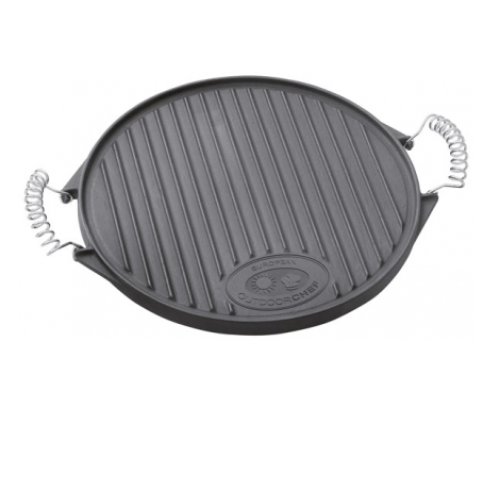 Strana s žebrováním pro restování steaků či zeleniny, hladká strana pro přípravu čehokoliv od sázených vajec přes bramboráky až třeba po palačinky/lívance. Masivní litina naakumuluje teplo a vždy restujete zprudka.