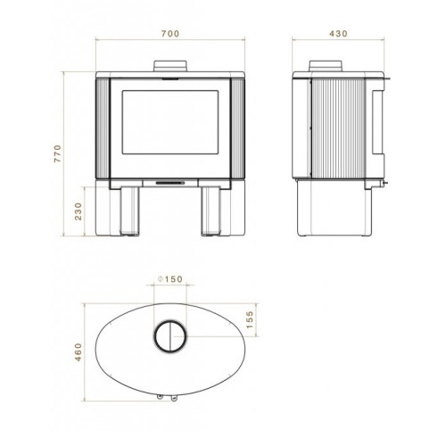 • Oválné sklo na dveřích vám zaručuje úchvatný panoramatický pohled na plameny.