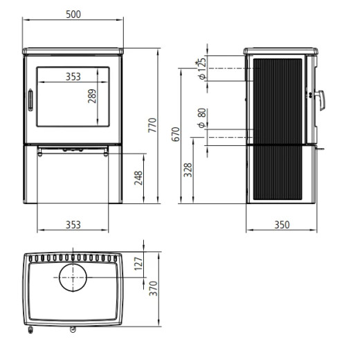 Kompaktní kvalitní litinová kamna od německého výrobce Leda vynikají masivní konstrukcí a velkým prosklením. Dokonalé spalování a pohodlné přikládání velkými dvířky zvyšuje komfort užívání. Povrchová úprava je černý matný lak. Nespornou výhodou je i možnost připojení přívodu vzduchu z exteriéru ovládání vzduchu jedním šoupákem a možnost horního či zadního odkouření.