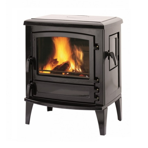Rustikální litinová krbová kamna Leda ARUBA, černý lesklý smalt s předním i bočním přikládáním