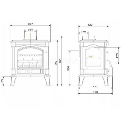 Kamna AKRON zaujmou svým tradičním designem, který dodá interiéru klasický a elegantní vzhled. Velké prosklení umožňuje příjemný pohled na oheň a vytváří útulnou atmosféru.