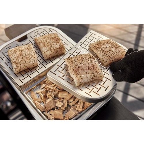 Rozšiřte možnosti svého elektrického grilu Lumin pomocí této 4-dílné multifunkční rozšiřující sady. Dvouúčelová nádržka rozšiřuje funkci grilu o napařování a uzení po celé grilovací ploše. Přemění funkci uzení grilu Lumin na plnohodnotnou elektrickou udírnu. Stačí přidat Vaše oblíbené udicí lupínky Weber a získáte pochoutky připravené pomalým grilováním na nízkém žáru, jako jsou žebra, vepřová ramínka a brisket. Nabízí také možnost přípravy čerstvé zeleniny na páře a celých ryb nebo humra. A když je čas na jídlo, hosté se mohou obsloužit sami díky sadě dvou ohřívacích misek, které udržují všechny ty chutné pokrmy po dobu několika hodin při správné teplotě – bez připálení nebo osychání.