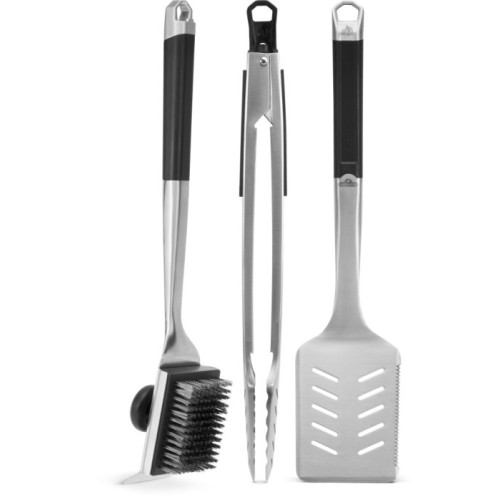 Posuňte své grilování na novou úroveň s prémiovou 3dílnou sadou nářadí, která je navržena pro profesionální pohodlí, kontrolu a odolnost. Tato sada obsahuje kleště Napoleon QuickClick™ pro snadnou manipulaci s potravinami na grilu jednou rukou, třístrannou špachtli se zkosenou hranou, která umožňuje otáčet a manipulovat s potravinami z jakéhokoli úhlu, a kartáč z nerezové oceli s odolnými štětinami pro náročné čištění, jako je odstraňování rzi, vodního kamene a připečených zbytků. Každý nástroj je vyroben z odolné nerezové oceli pro dlouhou životnost a má bezpečné, protiskluzové rukojeti, které poskytují bezpečnost a pohodlí při používání. Praktické otvory pro zavěšení ze slitiny hliníku, které slouží i jako otvíráky na lahve, udržují vaše nářadí po ruce. Kleště a špachtle lze snadno mýt v myčce nádobí. Pro prodloužení jejich životnosti se však doporučuje ruční mytí