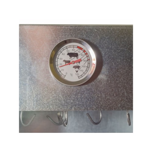Přísun vzduchu a množství kouře se reguluje za pomoci otevíracích dvířek ve spodní části udírny a horního otvoru. Při procesu uzení sledujte teplotu na teploměru v horní části dvířek.