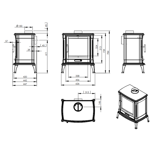 Litinová krbová kamna v elegantním hladkém designu s velkou plochou prosklení umožňuje nerušeně sledovat oheň. Kamna mají celolitinové topeniště se zdvojednou zadní litinovou deskou, pohyblivý rošt, popelník pod roštem, systém čištění skla vzduchem, systém dvoustupňového spalování - primární, sekundární i terciární vzduch.