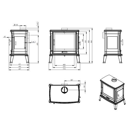 Větší litinová krbová kamna v elegantním hladkém designu s velkou plochou prosklení umožňuje nerušeně sledovat oheň. Kamna mají celolitinové topeniště,boční přikládání, litinový rošt, popelník pod roštem, systém čištění skla vzduchem, primární a sekundární regulátor.