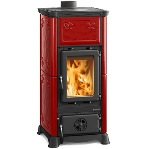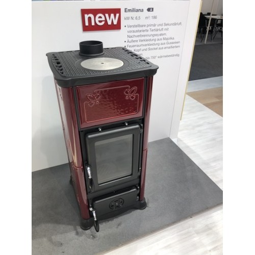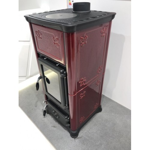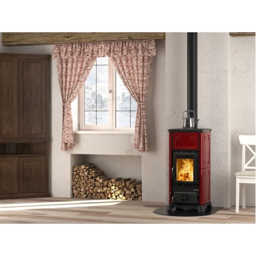 Krbová kamna Nordica Emiliana s bordó kachlovým obkladem a varnou plotnou
