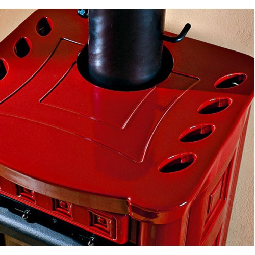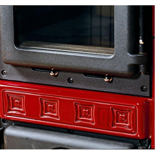 Krásná malá kachlová kamna, kdy se podařilo vyladit spalování až k účinnosti 82%. Klasické provedení s dvěma dvířky, jedno přikládací a jedno na popelník s malými oddělovacími kachličky je velmi líbivé. Nejnovější způsob trojitého spalování dřeva udržuje hodně tepla v kamnech, málo znečišťuje sklo a kouřové cesty.