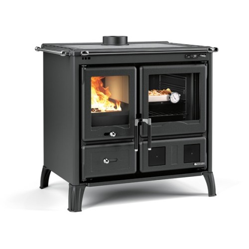 Nové chromované madlo, odvětrávané bočnice ze smaltované oceli nebo přírodního kamene, topeniště se žáruvzdornými bočnicemi z materiálu NORDIKER a litinovým dnem, smaltovaným popelníkem a smaltované litinové nožičky, to vše podtrhuje luxusní vzhled a promyšlenou funkci tohoto sporáku. Smaltované litinové čelo, rám a dvířka doplněné o kliky s novým designem dodávají opravdový pocit jedinečnosti a elegance.