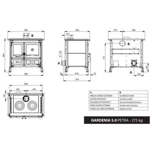 Gardenia 5.0 je ztělesněním tradice a inovace, které přináší nejen radost z vaření, ale i z úspor energie. Díky použití nejkvalitnějších materiálů a plotně z broušené litiny je zajištěna dlouhodobá odolnost a spolehlivost. Litinová varná plotna a optimální rozložení tepla zaručují, že vaření na bude vždy zážitkem plným chuti a radosti.
