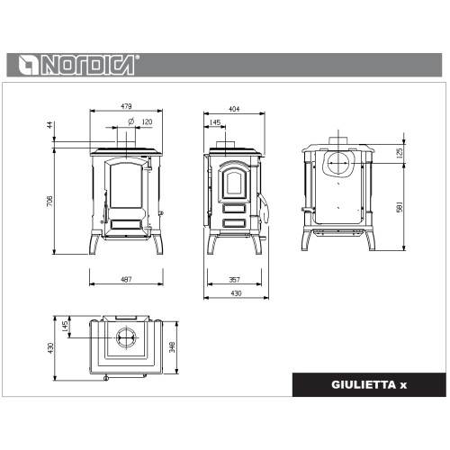 Krbová litinová kamna Nordica Giulietta - Antracitová černá