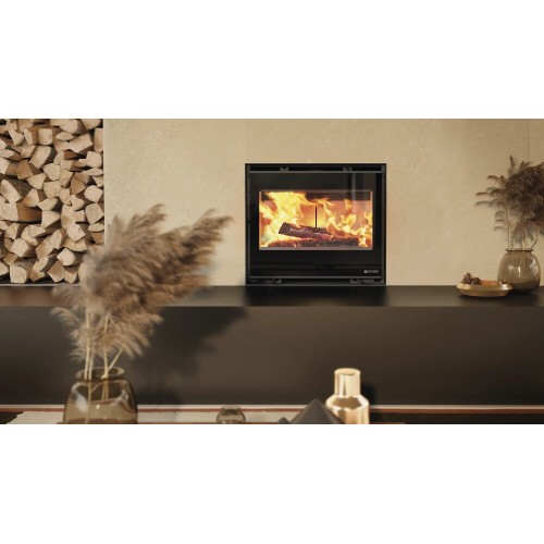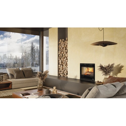 Dvouplášťová teplovzdušná krbová vložka s keramickým katalycký filtrem. Je to univerzální kazeta s vnějším teplovzdušným opláštěním z oceli a kompletní litinové topeniště vyložené keramikou Nordiker.