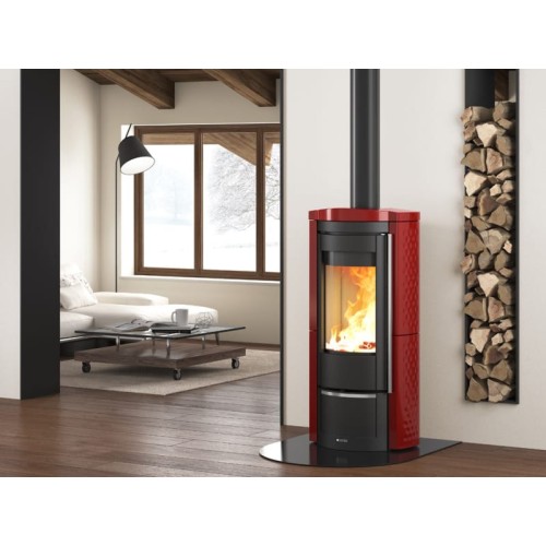 Vertikální topeniště umožňuje přikládání i větších polen. Velké prosklení zaručuje fantastický pohled na hru plamenů v průběhu hoření paliva v topeništi. Kamna mají litinovou přírubu s možností napojení na externí přívod vzduchu. Tím je možné zamezit čerpání vzduchu z interiéru. Jejich kulatý tvar je vhodný k instalaci ke stěně i do rohu. Ve spodní části pod topeništěm je snadno odnímatelný popelník. Ergonomické chromované madlo usnadní přikládání paliva.