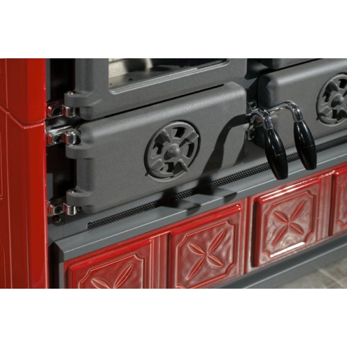 - Veškerá dvířka jsou také z masivní litiny. Vypovídající údaj o masivní konstrukci je samotná hmotnost sporáku, která je 169 kg.