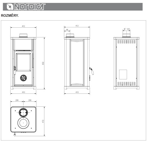 Vzdálenost od hořlavých materiálů za kamny: 200 mm