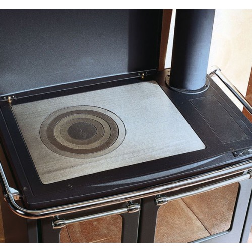 Sporák na dřevo se zabudovaným výměníkem pro vytápění i dalších místností. Boční ocelové stěny slouží jako druhý plášt pro ohřev vzduchu od podlahy. Nízká povrchová teplota umožňuje nábytek velmi blízko. Trojstupňové hoření a dvojité zasklení dvířek má vliv na na nízkou spotřebu , vysoký výkon do vody a velmi nízké emise CO2. Teplovodní výměník je vyroben v systému DSA. Těsnost každého kusu je ve výrobě kontrolována na 6 Barů. To je až 3x více než je provozní tlak a prakticky zcela vylučuje pozdější poškození. Zabudovaná dochlazovací smyčka ve spojení s termostatickým ventilem chrání výměník před přehřátím způsobeném např. při výpadku energie. Povrchová barva výměníku je žáruodolná a při instalaci automatického antikondenzačního okruhu je životnost prakticky neomezená! Pro zvýšení odolnosti propálení trouby je ještě vložen nerezový plech a rafinovaná přepážka vede plyny tak, aby po celé ploše varné plotny byla teplota rovnoměrná. Litinový rám s vloženou zabroušenou plotnou pro dokonalé vaření mají nad ohništěm 5 odnímatelných kruhů. Celá tato sestava má zespoda litinové výstupky – výstuhy, které prakticky odstraňují prasknutí a prohnutí. Dvířka na přikládaní i k troubě jsou ocelová. Využívají novou konstrukci pravoúhlých výstuh, takže je zcela vyloučeno kroucení v závislosti na teplotě. Pod roštem je velký popelník přístupný prosklenými dvířky. Regulační páčky jsou vedle sebe pod dvířky. Primárního vzduchu pomáhá při zatápění, sekundární je potřebný pro plynové hoření. Třetí – terciární vzduch pro zlepšení účinnost až na 81,2% je přisáván automaticky. Zcela dole je výsuvná zásuvka na dřevo.