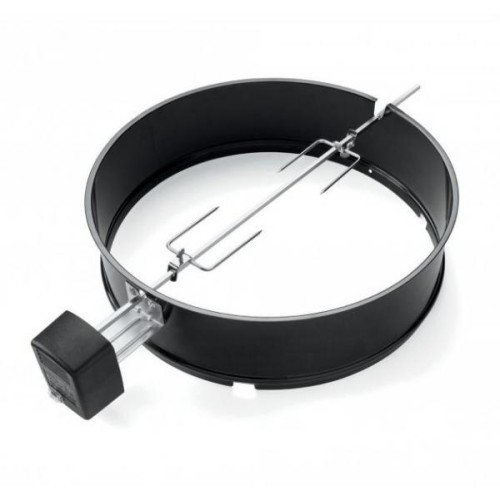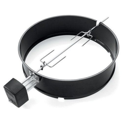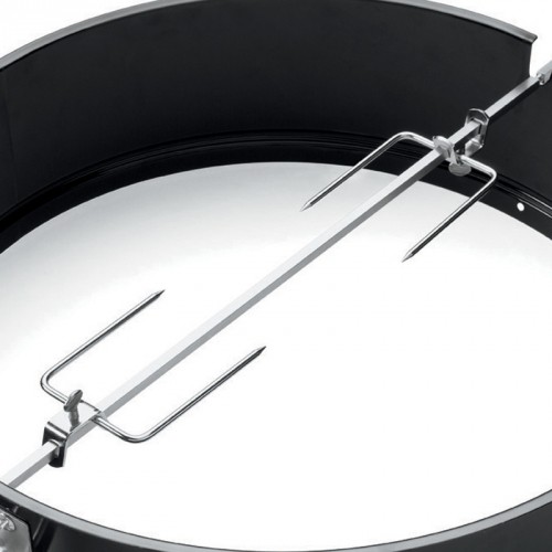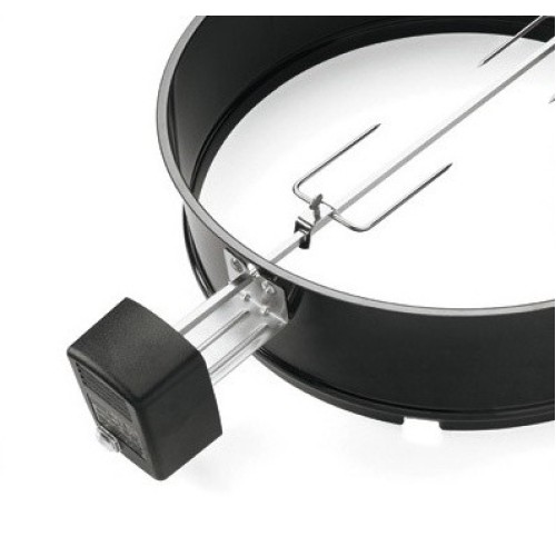 Otáčecí špíz je skvělým doplňkem pro váš gril Weber o velikosti 57 cm, který vám umožní připravovat velké kusy masa, drůbeže nebo zeleniny rovnoměrně a šťavnatě. Díky němu můžete na grilu připravit celé kuře, krůtu, kýtu nebo třeba velké špízy, ale také popcorn, opečené brambory a mnoho dalšího. Nástavec ze smaltované oceli dokonale kopíruje tvar grilu a poklop lze jednoduše postavit na něj, takže Vám zvýši objem grilu. Rottisserie je vhodná také pro gril Master-touch PREMIUM, kloubový mechanismus lze sundat pomocí jednoho šroubu. Poté se mechanismus vysune a špíz se jednoduše položí na gril. Robustní motorek utáhne bez problémů až 11 kg masa, délka přívodního kabelu je 80 cm.