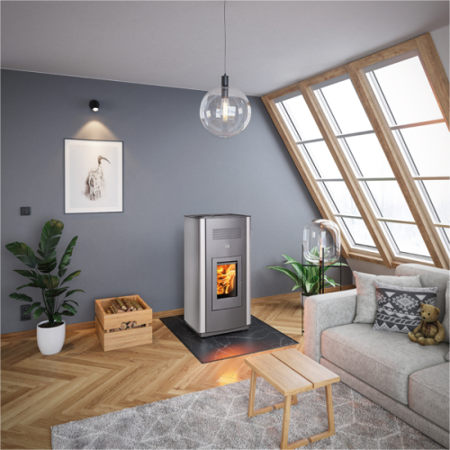 Extrémně tichá peletová kamna HSP 6 Toledo IV 32 budou slušet každému modernímu interiéru. Antracit spolu s šedými prvky doplňují velká prosklená dvířka (sklo 383 x 224 mm). Peletová kamna HSP 6 Toledo IV 32 můžete díky WLAN modulu ovládat z celého světa přes funkci Global. WLAN Modul je nyní součástí dodávky. Navíc si stačí stáhnout naší aplikaci HAAS+SOHN do mobilu a pohodlí máte na dosah ruky.