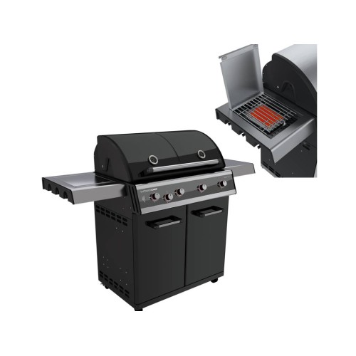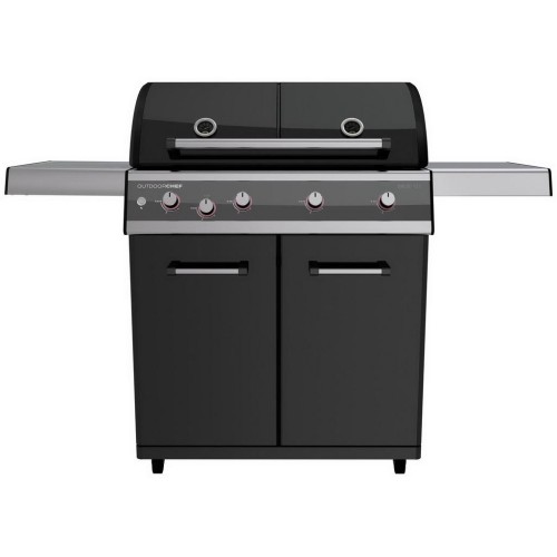 Plynový gril Dualchef 425 G BZ zaujme na první pohled svým robustním provedením v černé barvě a moderním designem, díky němuž se bude vyjímat na každé zahradě. Hlavní grilovací plocha má rozměry 3 564 cm2 a je tvořena odolnou litinovou mřížkou. Gril je vybavený čtyřmi dvojitými hořáky s vysokým výkonem pro perfektní distribuci tepla a jedním bočním infračerveným hořákem BLAZING ZONE umožňující rychlé a dokonalé opečení steaků a dalších kusů masa při teplotě až 900 stupňů Celsia pro dokonalou kůrčičku, kterou vnikne díky tzv. Maillardově reakci. S grilem Dualchef 425 G BZ můžete současně grilovat různé potraviny, a to díky systému DGS, který efektivně rozvádí teplo grilovací komorou a rozděluje ji do dvou různých teplotních zón. SYSTÉM DUAL GOURMET mění definici grilování - jedná se o patentovaný systém (DGS ®) vyvinutý ve Švýcarsku. Tato technologie kombinuje dvě teplotní zóny oddělené nerezovým předělem pod jedním víkem. To vám umožní grilovat při vysokých teplotách nad 360 stupňů na jedné straně a pomalé pečení velkých kusů masa nebo ryb při teplotách od 80 stupňů na druhé straně. Litinové rošty vám pomůžou udělat dokonalou mřížku na grilovaných potravinách. Safety light system (SLS) v ovládacích knoflících se aktivuje, jakmile se otevře ventil plynové lahve. Světelný senzor automaticky upravuje intenzitu světel LED podle jasu okolí. Robustní skládací boční police poskytují dostatek prostoru pro přípravu pokrmů. Kromě sofistikované technologie a chytrého příslušenství zaujmou modely Dualchef také jasně definovaným, moderním designem v černé barvě a uživatelsky přívětivými funkcemi, jako je spodní skříňka na plynovou láhev a příslušenství. Díky všem těmto vlastnostem je Dualchef 425 G perfektně vybavenou venkovní kuchyní, která splňuje všechny možné potřeby. “ Grilovací plocha grilu se sestává z litinové mřížky. Elegantní mohutný gril je vybaven 4 chrániči hořáků z nerezové oceli, které snižují riziko vzplanutí odkapávajících šťáv. Dvouplášťové víko je ke grilu připevněno kloubem, abyste měli při grilování obě ruce volné. Grily od OUTDOORCHEF jsou určené jak pro začátečníky, tak pro kulinářské mistry. Uspořádejte velkou letní party s rodinou, přáteli a dobrým jídlem!