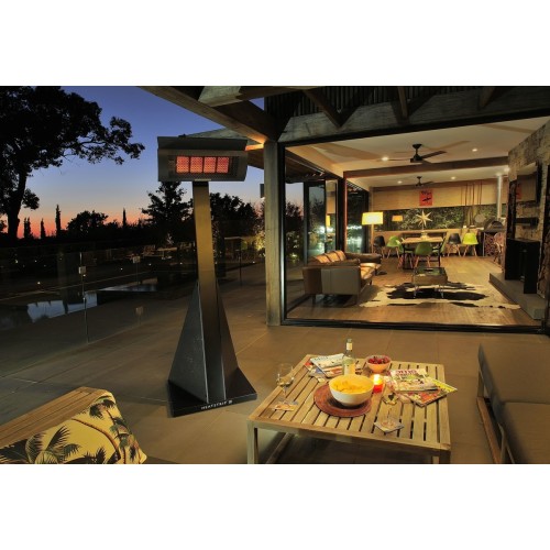 Plynový tepelný zářič HEATSTRIP - stylové plynové topidlo pro venkovní použití. Velmi elegantní topidlo zpříjemní venkovní pobyt o chladné dny, večery a noci kdekoliv jej postavíte - na zahradě, terase, v restauraci, kavárně nebo baru. Zdrojem tepla plynového zářiče Heatstrip je 4-dílný keramický hořák překrytý perforovaným plechem. Díky piezozapalování se topidlo snadno uvádí do chodu. Ovládací knoflík umožňuje volit intenzitu tepla v rozmezí min-max. Robustní provedení se stabilní základnou je zárukou, že se topidlo nepřevrhne. Tělo zářiče je vyrobeno z oceli opatřené práškovým nástřikem.