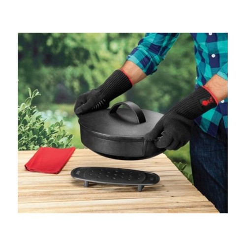 Servírujte svojí lahodnou večeři přímo z grilu, a zatímco budete jíst, nechte GBS komponenty zcela vychladnout na robustní, univerzální podložce. Vyrobena z litiny, snese teplo i z litiny rozžhavené z grilu, z hrnců a pánví a dokonce i horkého komínového startéru.