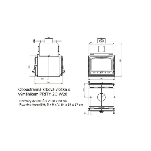 | Rozměry topeniště (Š x H x V) | 535 x 570 x 365 mm |