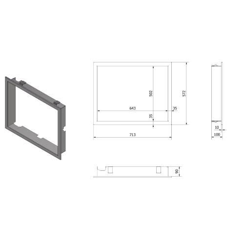 Moderní ocelový dekorativní rámeček tradiční pro Kratki LUCY 12, LUCY 12 SLIM, LUCY 12 T šířka rámu 35 mm