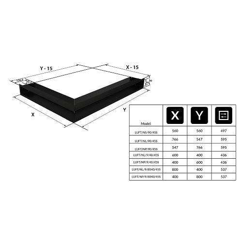 | Rozměry luftu: | 600 x 90 / 400 x 90 mm |