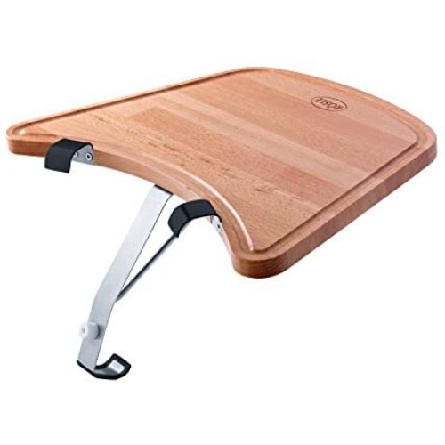 Stolek je vyroben z lakované desky z bukového dřeva, což zaručuje jeho odolnost a dlouhou životnost. Po obvodu desky je drážka, která zachycuje šťávu z připravovaných pokrmů a udržuje tak pracovní plochu čistou.