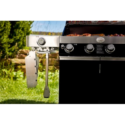 Rösle Videro G3 je špičkový plynový gril, který si získal oblibu mezi náročnými grilovacími nadšenci. Jeho kvality oceníte při přípravě rodinných obědů i velkých grilovacích party. Co Rösle Videro G3 nabízí: výkon a rovnoměrné teplo zajišťují tři hlavní hořáky z nerezové oceli, které zajišťují rovnoměrné rozložení tepla po celé grilovací ploše. Boční hořák pro přípravu omáček a příloh. Velká grilovací plocha poskytuje dostatek prostoru pro přípravu jídla pro celou rodinu nebo větší skupinu přátel. Kvalitní materiály, litinový grilovací rošt pro perfektní grilovací mřížku a konstrukce z nerezové oceli pro dlouhou životnost a odolnost. Praktické funkce, teploměr ve víku pro snadnou kontrolu teploty, systém zapalování Jet Flame pro rychlé a spolehlivé zapálení a snadné čištění díky odkapávací misce a vyjímatelnému roštu. Masivní grilovací rošt ze smaltované litiny umožňuje umístit doplňkové příslušenství jako WOK pánev, pizza kámen, litinový kotlík a nebo pánev namísto středového roštu, který se jednoduše vyjme a vymění. Gril Rösle Videro G3-S Vario+ má i postranní Primezone, což je hořák, který dokáže rozpálit gril až na 800 °C. Je určen pro ty, kteří hledají vysoce kvalitní a výkonný plynový gril, pro náročné grilovací nadšence, kteří ocení široké možnosti využití, kvalitní materiály, robustní konstrukci a také pro ty, kteří chtějí gril, který se snadno používá a udržuje.