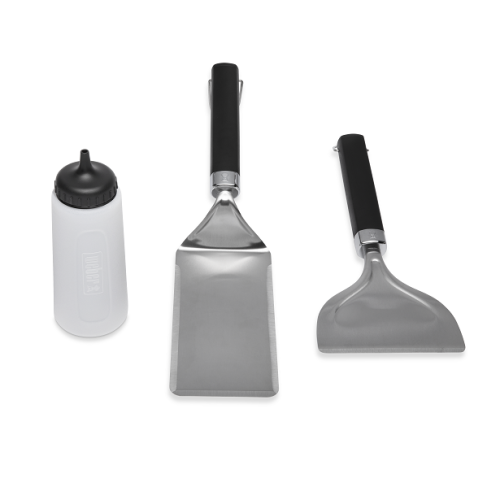 Grilování na planche snadno a rychle. S Weber základním setem na planchu se můžete pustit do čehokoliv od nadýchaných lívanců přes pikantní fajitas po klasické topinky. Základní sada pro grilování na planche obsahuje obracečku na planchu, škrabku na planchu a dávkovací láhev na planchu.