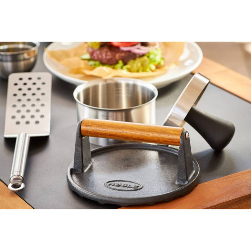 Na žádném velkolepém zahradním grilování nesmí chybět chuťově vymazlený burger! Nerezová obracečka na burgery usnadňuje otáčení burgerů na litinové desce a její děrované provedení zaručuje odvod přebytečného tuku a šťávy. Kulatý tvar rukojeti zajišťuje příjemnou manipulaci.