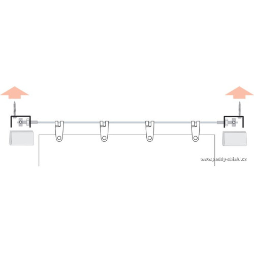 Tato sada obsahuje kompletní napínací techniku k napínání ocelového lana na strop balkonu – na bok a/nebo dopředu.